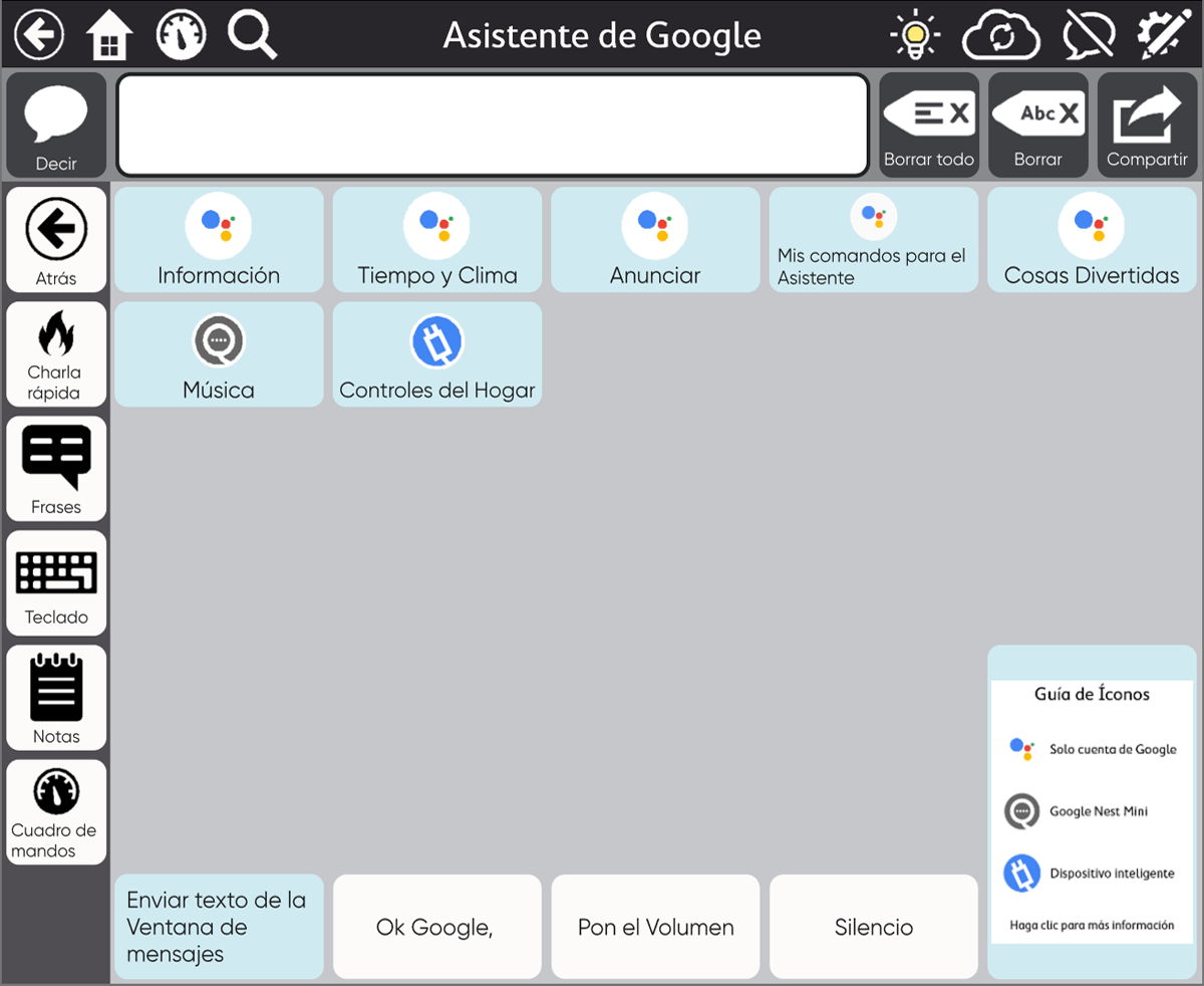 Accede a asistentes inteligentes como Google y Alexa para controlar las luces, música y más mediante páginas predeterminados.