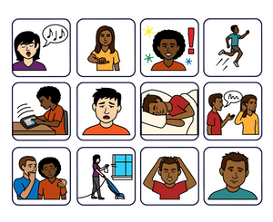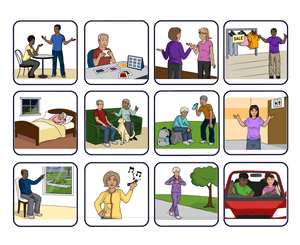 Estos pictogramas fueron diseñados específicamente para que los adultos mayores con dificultades en el lenguaje se comuniquen en situaciones de la vida cotidiana. Estas ilustraciones detalladas y realistas se pueden utilizar como íconos de un solo significado o como escenas visuales. Hay cientos de pictogramas disponibles sobre situaciones comunes de la vida diaria y sobre contextos específicos.